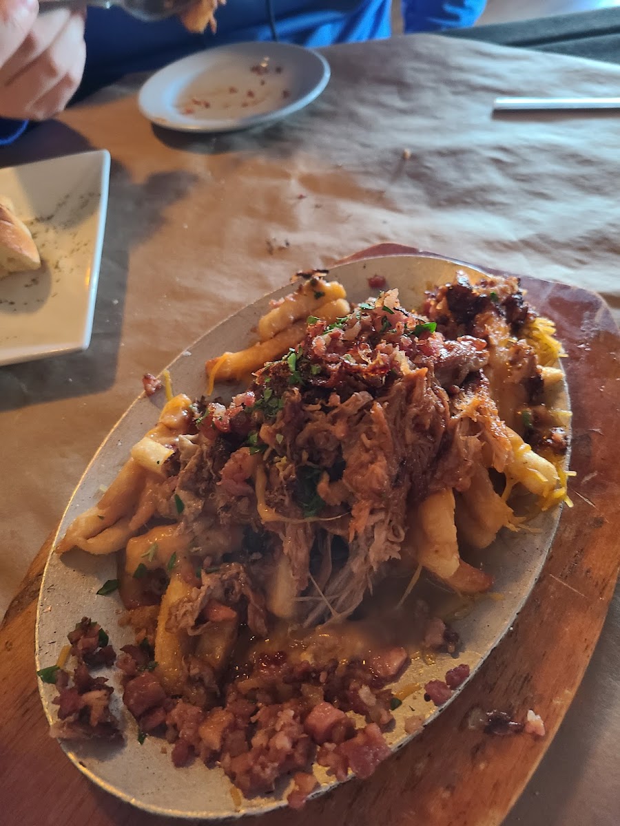 - Starter Plates: Dive into the Spinach Artichoke Dip served with homemade tortilla chips, or enjoy the rich Rust Belt Fries, generously loaded with pulled pork and bacon.